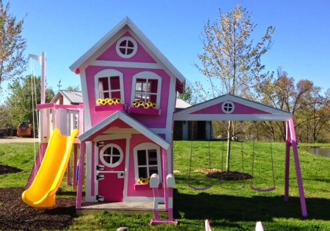 This gorgeous set is the second one of its kind that we've built in less than a year's time. The details on this one are undeniably girly (even tho it could easily be converted to a more boyish or gender neutral clubhouse look).